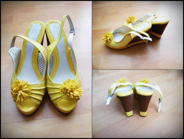 be galo grazios,dydis 37,devetos,bet be defektu.Geltonos sodrios spalvos.Ant platformos.Verte:10 eur..Lietuvoj apmoku siuntima.Platforma 11cm,prieky-2 cm