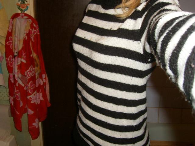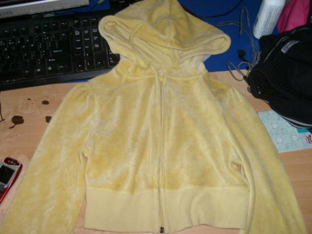 trumpas geltonas megstukas, dryzuotas labai ilgas megstukas, baltas dzemperis su kapisonu ir zydrai baltas bliuzonas, uzsidejus labai graziai atrodo.