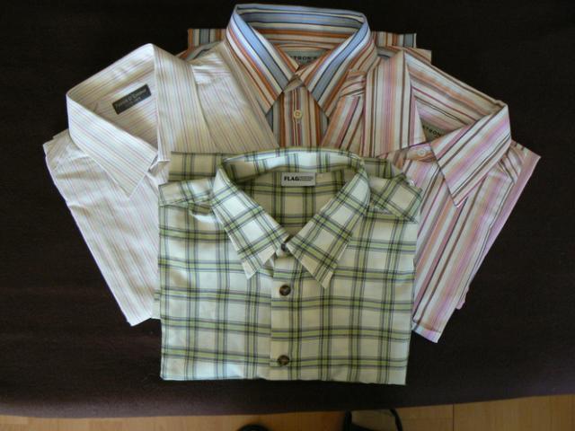 Žali - trumpom rankovėm (39-40), šviesūs dryžuoti - ilgom r. (42), melsvi dryžuoti - ilgom r. (39-40), alyviniai dryžuoti - ilgom r.(39-40)