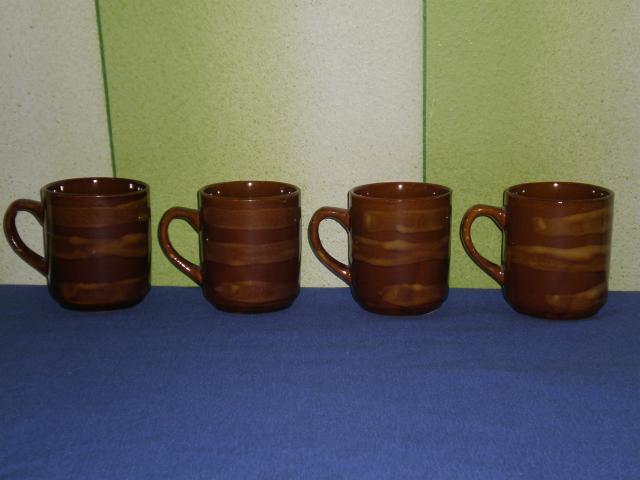 4 rudi puodeliai (puodukai) kavai