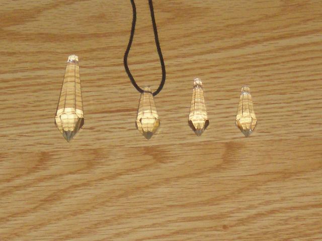 4 stikliniai kristalo formos pakabukai ant kaklo