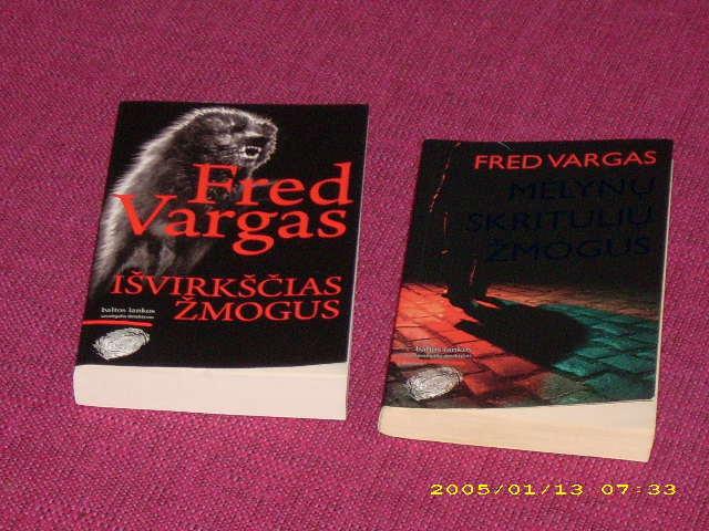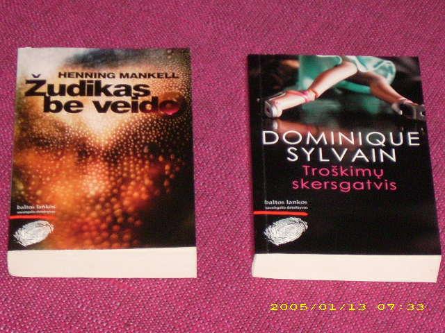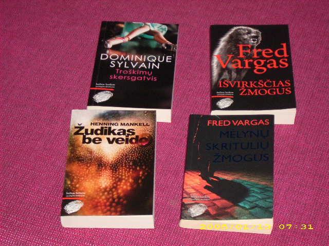 Fred Vargas "Išvirkščias žmogus" ir "Mėlynų skritulių žmogus", Henning Mankell "Žudikas be veido", Dominique Sylvain "Troškimų skerstgatvis".