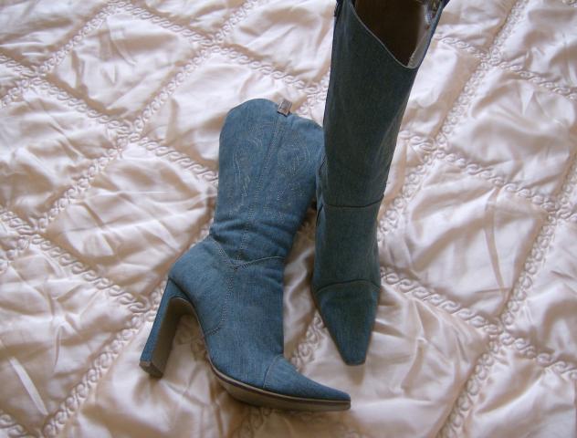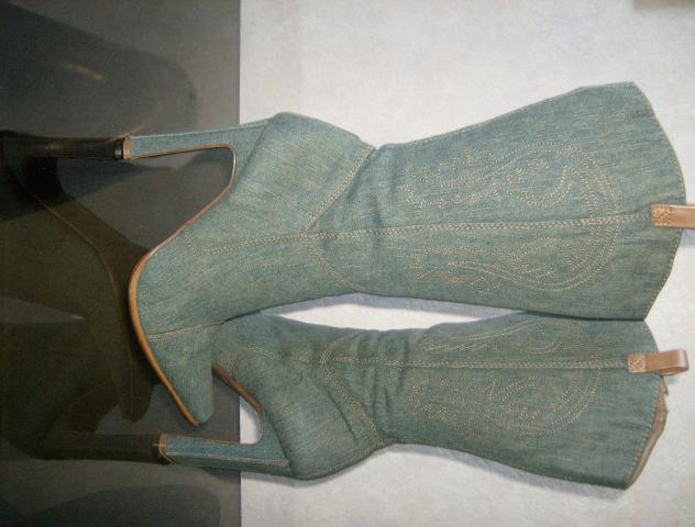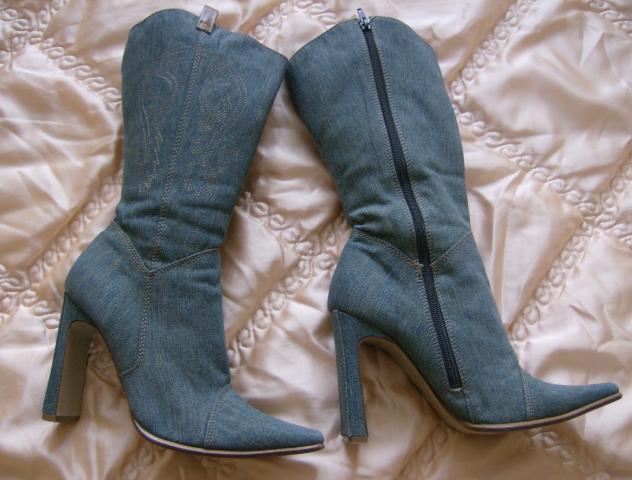 40 dydzio,dzinsiniai mazai nesioti labai geros bukles neissitampe,ant aulu issiuvineti rastai.kulno aukstis 11 cm.parduodu arba mainau :)