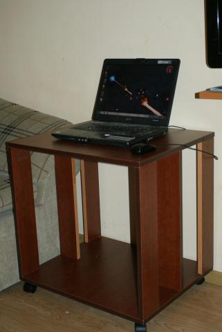Labai patogus dirbti kompiuteriu sėdint ant fotelio. Galima naudoti kaip žurnalinį staliuką. Išmatavimai stalviršio: 52x54 cm, aukštis 55 cm., lentynėlė, ant ratukų, stabilus. Graži spalva, nenuvalkiotas. Kaina 5 eur Vilniuje galiu atvežti.