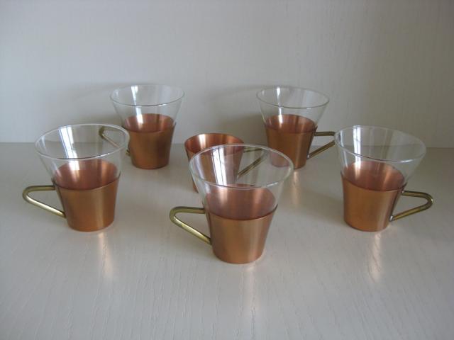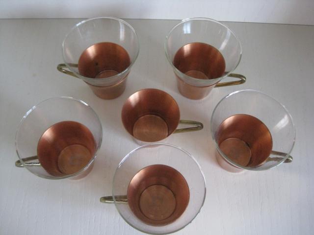 Buvo 6, bet viena sudužo, tad liko 5. Stiklinės aukštis 8.2 cm, skersmuo 8.5 cm.