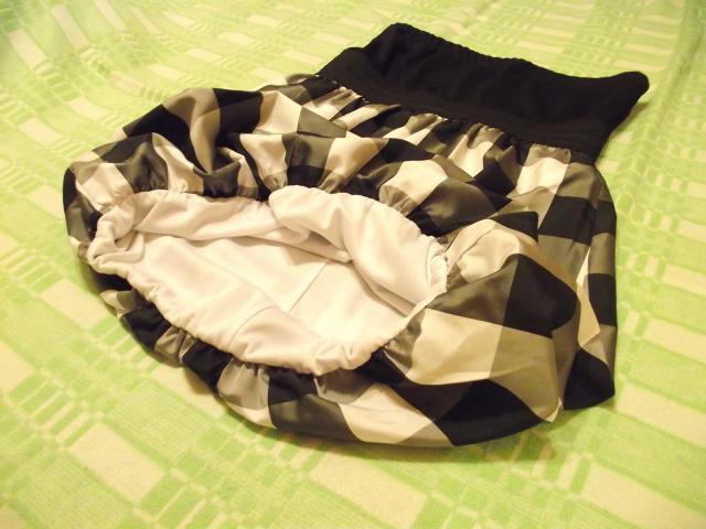 Suknelė gana daug nešiota, labai pamėgta, bet dabar, deja, per didelė. Gražiai atrodo su baltutėm pėdkelnėm. Tinka kiekvienai šventei. Skirta aukštoms panelėms, ilgis iki pusės šlaunies.