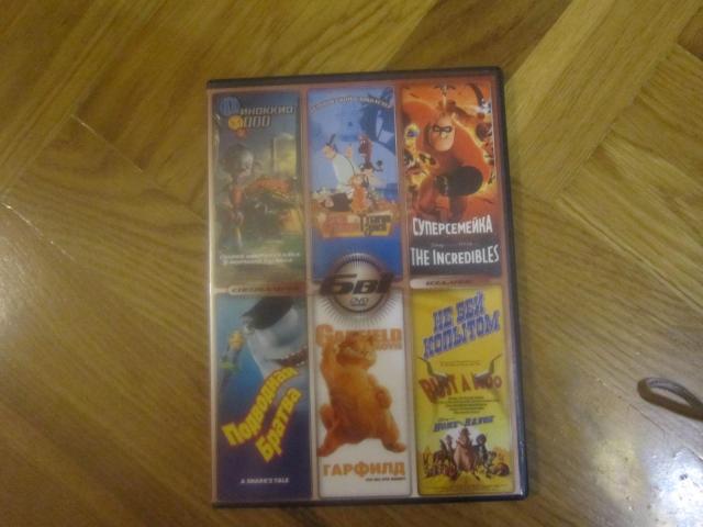 Šeši rusų kalba įgarsinti animaciniai filmukai viename DVD diske. Pinokis 3000, Aliosha Popovich i Tugarin Zmei, Shark's Tale, Garfield The Movie, Home of the Range, The Incredbiles. Domina mainai.