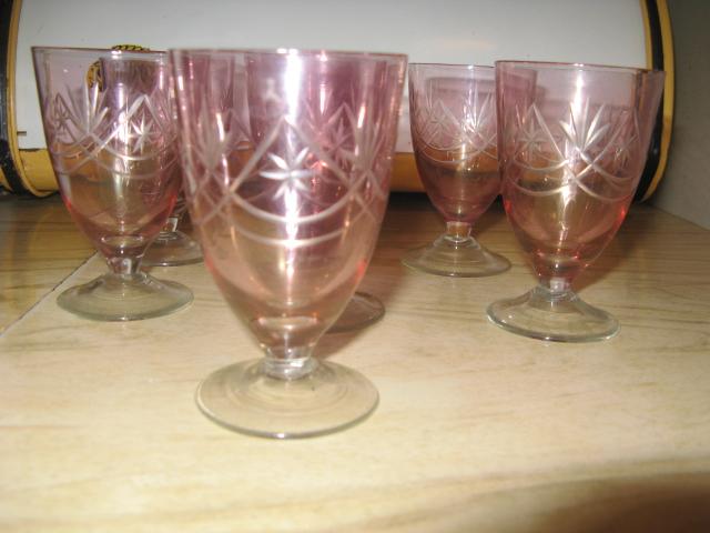 6 rausvos stiklinaitės sovietinės