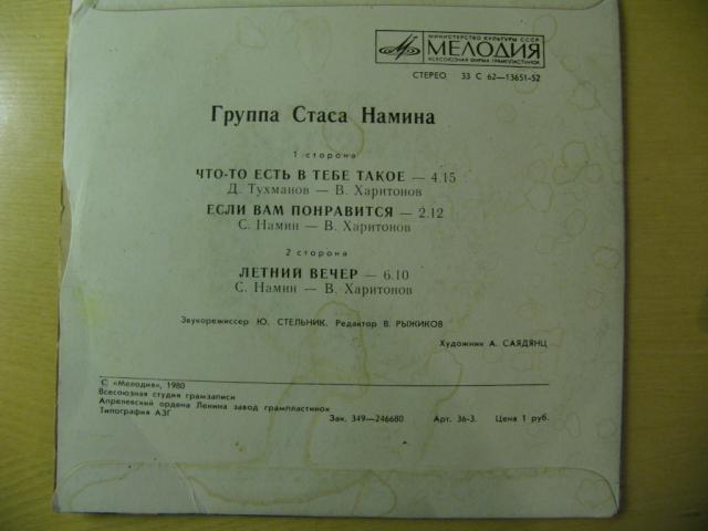 7'' gruppa Stasa Namina 1980 (plokstele)