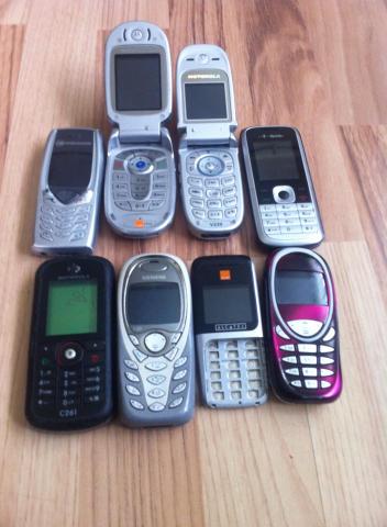 Parduodami pigūs telefonai dalims, remontui ar į kolekciją Visi telefonai su defektais, pilnai netikrinti. 1.Medion Mobile nebera 2.Motorola V500 be galinio dangtelio ir baterijos, netikrintas. 3.Motorola V220 neįsijungia. 4.ZTE R221 be baterijos ir galinio dangtelio. Įsijungia, sudužęs ekranas. 5.Motorola C261 Nėra baterijos ir ekrano, netikrintas. 6.Siemens C60 Be baterijos ir galinio dangtelio, netikrintas. 7.Siemens C55 Sudužęs ekranas, nėra baterijos ir baterijos kontaktų. 8.Alcatel aplau