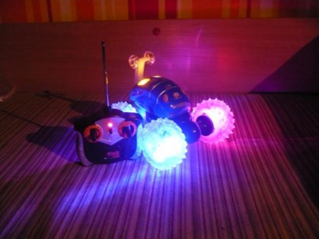 Šis fantastiškas žaislas galima apsisukti 360 laipsnių, apsiversti, važiuoti aukštyn ratais... Jūs matėte automobilį šokantį breiką? Šis modelis nebijo jokio paviršiaus. Šviečiančių ratų bei ryškaus šviesos diodų korpuso dėka, galima žaisti tamsiu paros metu. Tikrai nežemiškas žaislas! Kaina tik : 70 lt Valdymas radijo bangomis;Valdymo nuotolis 10-12m; Naudotas 4-6 kartus nesubraizytas masiniukas. Domina rasykit i mano el. pasta: mykolas.rudokas@gmail.com http://www.youtube.com/watch?v=L2NwfFNq7Cc