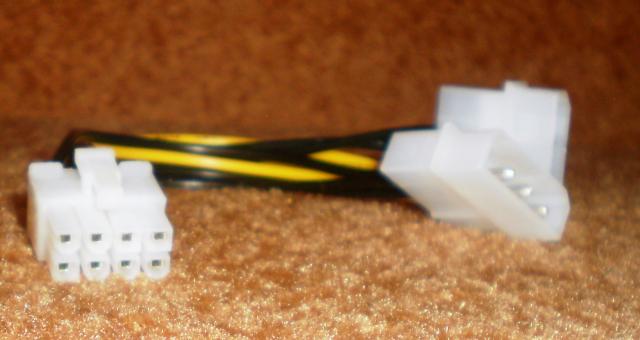 Jei kas turi vaizdo kortą, kuriai reikia, tarkim, dviejų 8 pin užmaitinim0, o maitblokis tokio neturi, tai šis perėjimas išpręs problemą.Jungiasi prie dviejų moleksų.