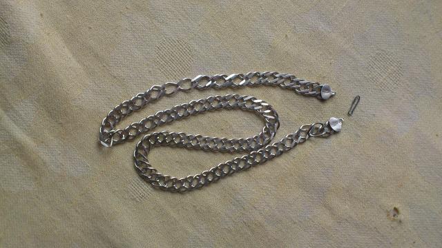 Parduodu sidabrine grandinele. Ilgis 50cm, svoris 43gr. 925. Nera sagties kuri buvo, yra tik paprasta sagtis,galima uzdeti. yra nuotrauka kurioje parodyta ta sagtis kuri yra.