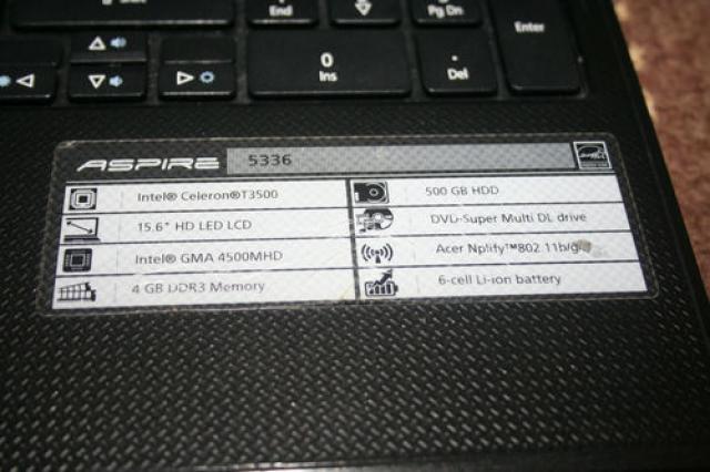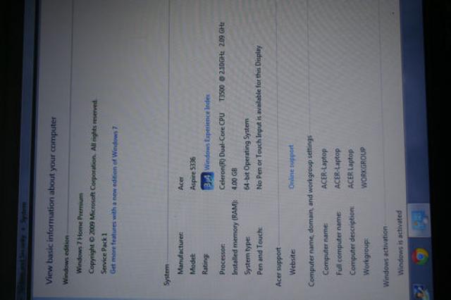 ACER Aspire 5336 Laptop, Win 7Office 2010 4GB ram 500GB HD