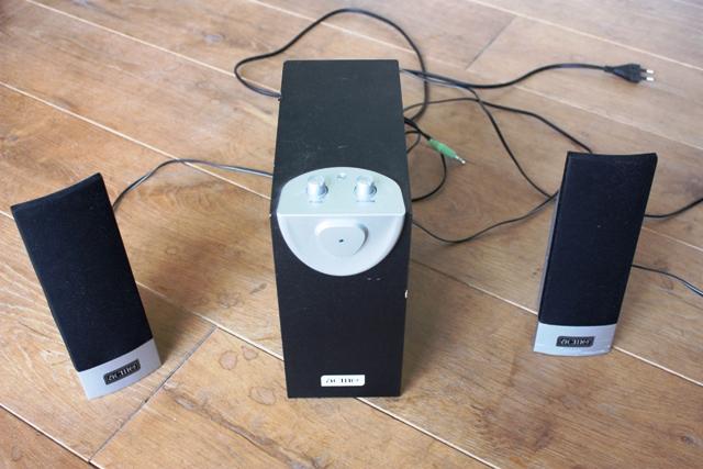 Naudotos Acme kolonėlės. Veikia, bet skleidžia foninį ūžesį ir kartais atsiranda aukštų dažnių iškraipymų, visa kita matosi nuotraukoje.