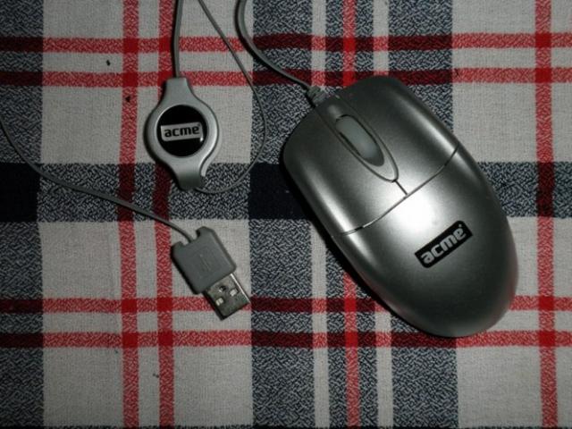 Acme optinė nešiojamojo kompiuterio pelė. USB. Maža, patogi, reguliuojamas laido ilgis.