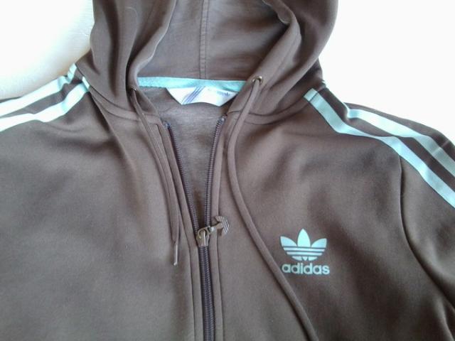 Geros būklės,tvarkyngas,Adidas bliuzonas.Turi mažą defetką-mažytę skylutę and dešnės rankovės juostos,bet tik nusipirkus užkabinau kažkur ir nei skalbiant ,nei dėvint nesiardo ir nedidėja.(4 foto)