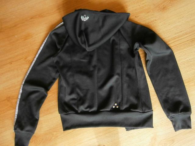 Labai geros būklės džemperis su gaubtuvu. Yra kišenės, segasi segtuku, bet segtuko nesimato, paslėptas. Priekis dekoruotas adidas ženkliukais, taip pat išsiuvinėtas adidas ženkliukas, ant kapišono ženkliukas iš akučių, visos akutės vietoje, laikosi labai gerai. Džemperis iš UK. Defektų nėra, vilkėtas kelis kartus, nenuskalbtas. Neturiu kaip pati nusifotografuoti apsirengusi jį, bet drabužis tikrai nuostabus, parduodu nes nelabai nešioju sportinius drabužius. S/8 dydis. Ilgis per segtuką 48 cm Rankovė