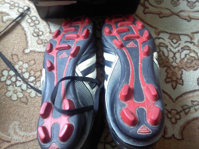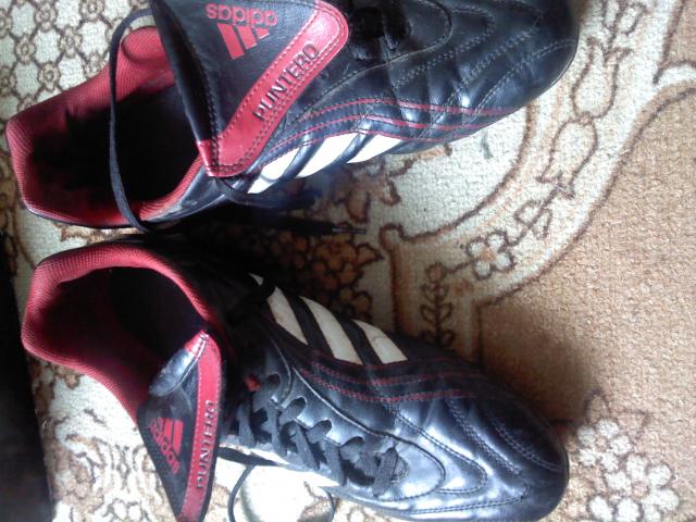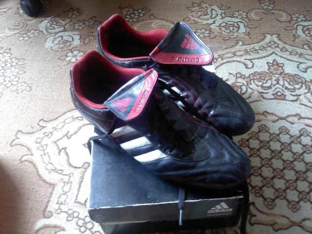 Adidas lauko futbolo bateliai,originalus,pirkti is sporto prekiu parduotuves.Bukle 8/10,nes yra aptrinti,taciau nenuspardyti,nera jokiu klijavimu ar itrukimu.Labai patvarus,galima zaist ir lyjant,sningant,todel isvaizda gan primityvi,bet patys labai tvirti.Dydis UK11,tai butu 45/46 dydis.Del kainos galima ir pasideret
