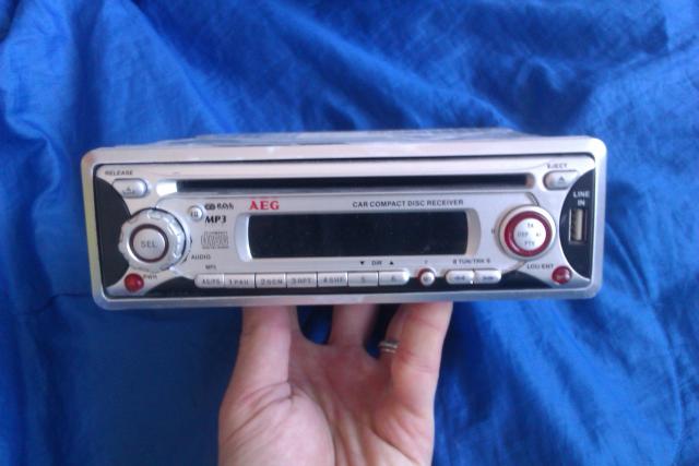 AEG MP3 magnetola 4x50W, bukle beveik ideali, pora linijiniu isejimu, AUX IN. Groja neblogai, tik stringa jei idedi pabraizyta diska. Katik iskepta diska skaito gerai. Yra dokumentai.