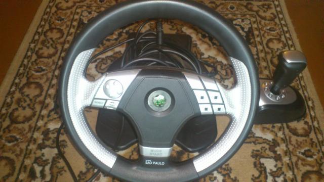 Žaidimų vairas tinkantis visiems kompiuteriams (laidų išėjimai 2: usb ir playstation), trūksta tik priekinio (viduryje vairo) lipduko. Viskas veikia + diskas. Komplektacija: Vairas, pėdalai ir svirtelė. Nr.:867241582