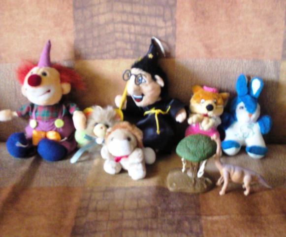 Dalis žaisliuku, turiu dar graziu meskinu, suniuku.... plastikinis zaislas sukasi uzdejus dinozauro koja :)