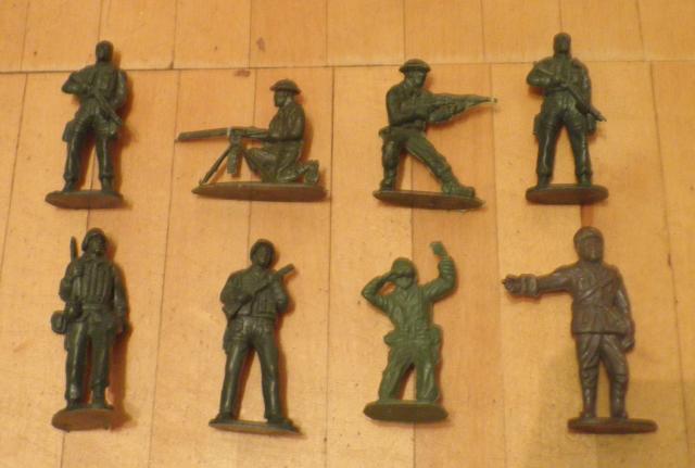 Žaisliniai kareivėliai, kelių rūšių. Žaislinis kareivinis tankas iš to pačio rinkinio