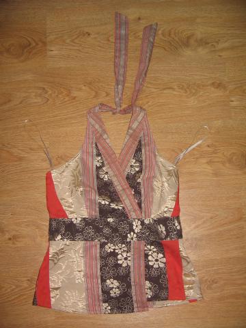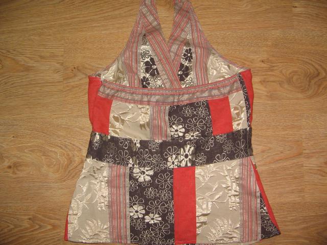 Palaidinė užsiriša per kaklą, nedėvėta, nes man gerokai platoka.