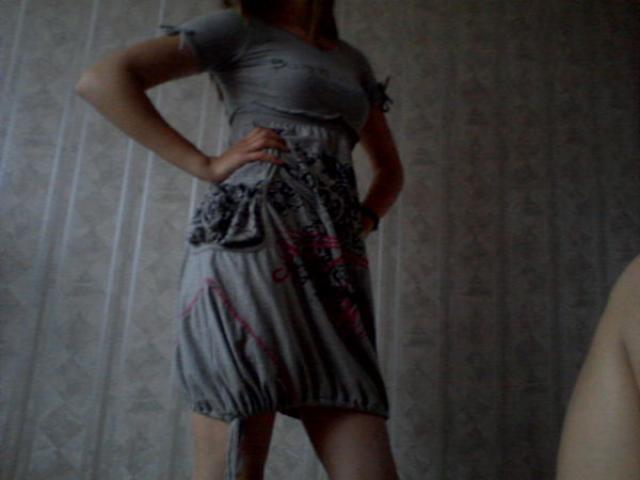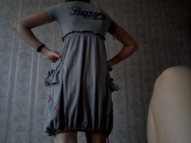 pilka suknutė. Galima nešioti, kaip ilgą (jei jūs žema) ir trumpesnę(jei jūs aukšta).