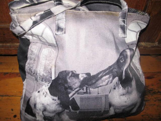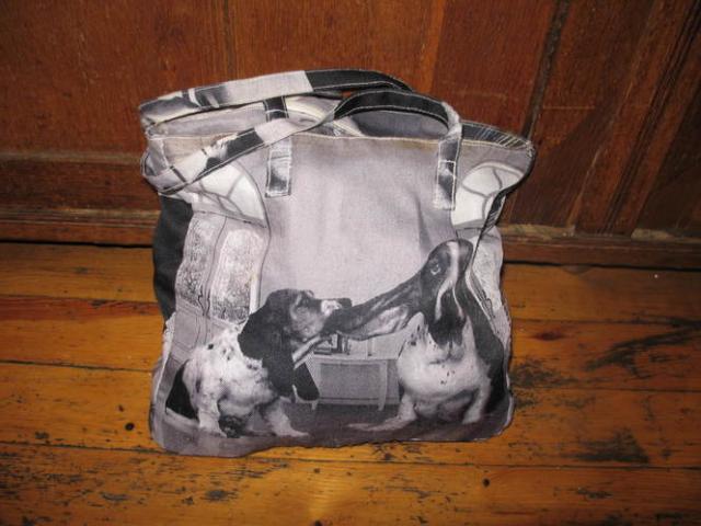Žaisminga, talpi rankinė su basetų piešiniu.