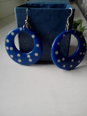 Melyni, baltais taškeliai auskarai. Labai smagiai atrodo :)