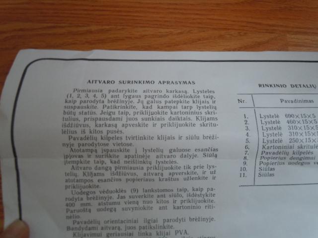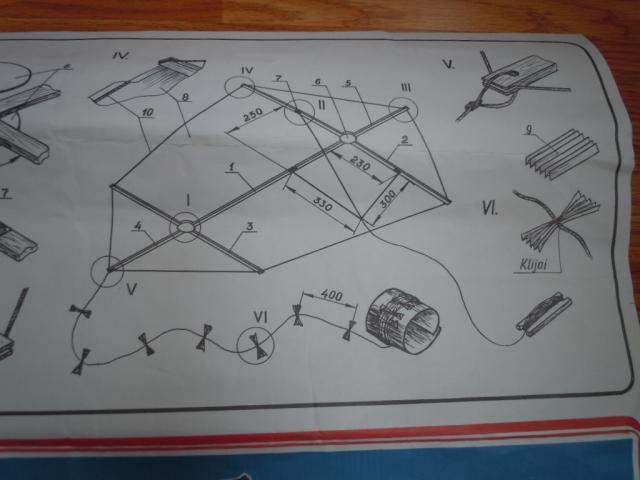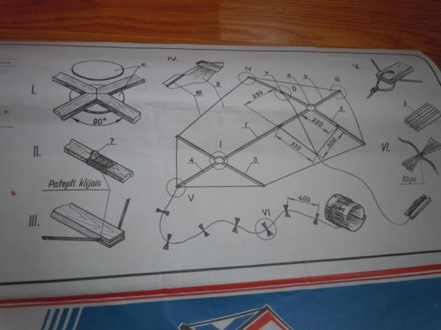 Senų laikų (pirktas 1990 m) lietuviškas aitvaras. Yra visos detales ir smulki instrukcija jam pasigaminti.
