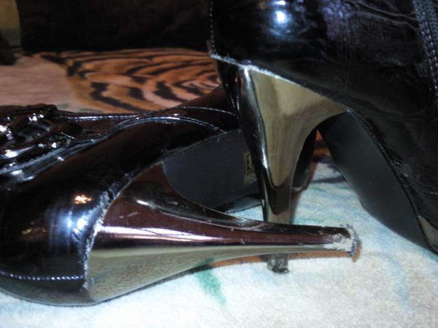 Aukšti ir blizgantys aukštakulniai. Reikėtų nebent kulniukus pasitvarkyti, o šeip super batukai :) Jei kas domina klauskit