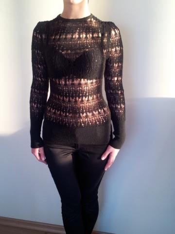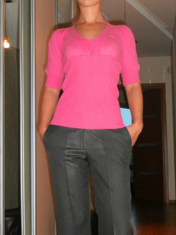 Nerta palaidinė, Tally Weijl džinsinis sijonas su kišenėmis, rožinė palaidinė, Mango palaidinė su žvyneliais ir dailia nugara, H&M megztinukas.