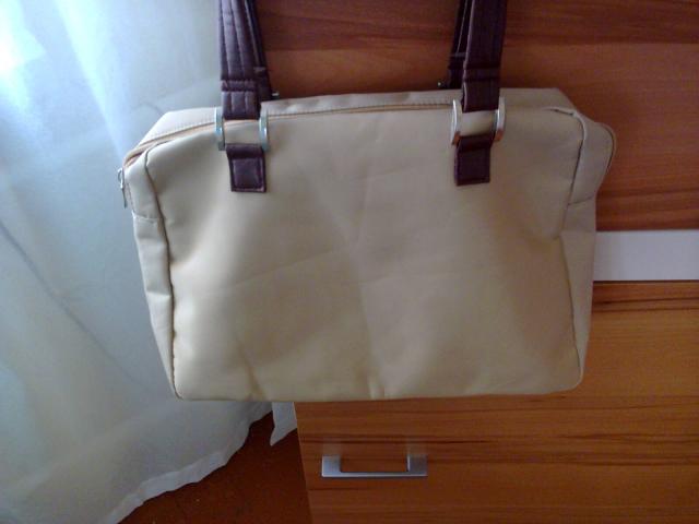 Rankine su dviem talpiais skyriais ir nusegama pinigine viduje, yra smulkus defektukas, kuris beveik nematyti. kaina galutine su reg. siuntimu.