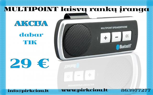 Akcija! Nešiojamas „Bluetooth mini garsiakalbis, laisvųjų rankų įranga „Multipoint“ Daugiau informacijos: www.pirkciau.lt; info@pirkciau.lt PRISTATYMAS VISOJE LIETUVOJE! Kaina: 29 € „Multipoint“ bluetooth laisvų rankų įranga leidžia patogiai ir saugiai skambinti, vairuojant transporto priemonę. Taip pat yra praktiška, lengva, tad ją galima nešiotis su savimi. Nesvarbu, kur būtumėte – kelyje, susirinkime, biure, konferencijoje ar tiesiog namuose. Patogiai pastatoma ant stalo ar lentynos. Prietaisas pui