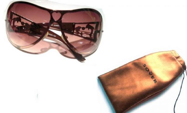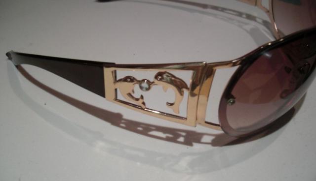 Grazus akinukai nuo saules, stiklai tamsei rudi (rudesni nei foto nes apsviete), kojeles aukso spalvos ;) priekyje viduryje sirdele, ant kojeliu delfinukai, tokia labai meili :) + bronzinis deklas dovanu!