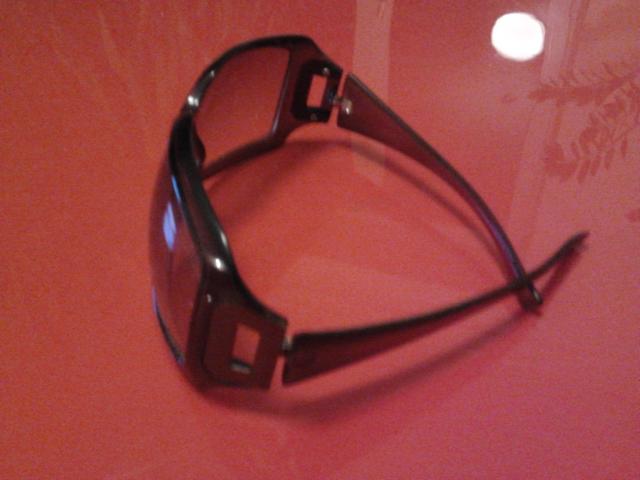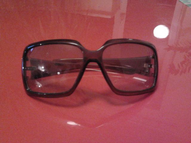 Akiniai nuo saulės rudais stiklais, pirkti Sarma parduotuvėje.