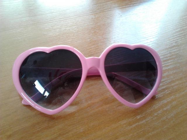 Širdelės formos akiniai , be defektų , spalva ryškesnė nei nuotraukoje . Iš parduotuvės TIGER .