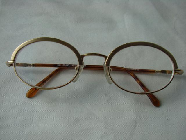 Retro stiliaus akinių rėmeliai aukso spalvos apvalūs.