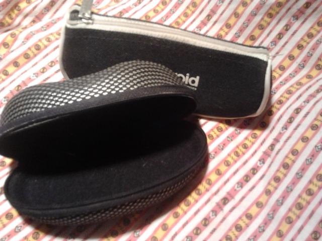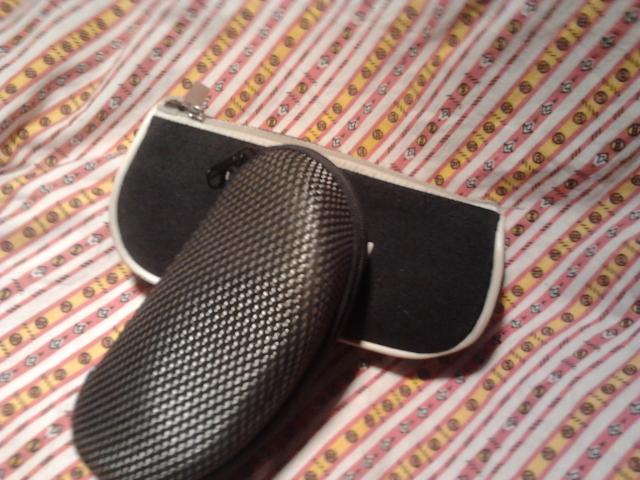 Du akinių dėklai. Vienas kietu korpusu, kitas minkštas.