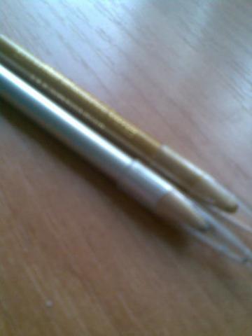 Auksinis ir sidabrinis akių&lūpų pieštukai. Kokybė nekokia, nes foto daryta telefonu.