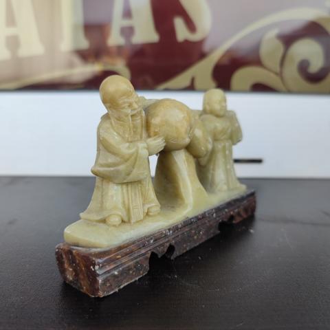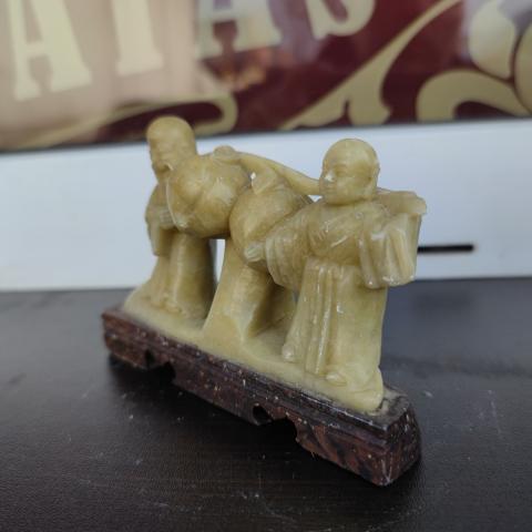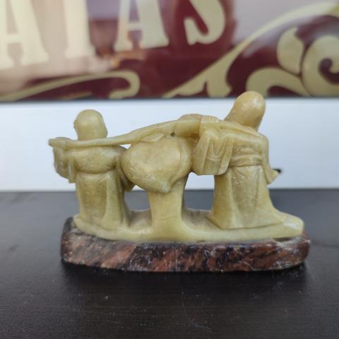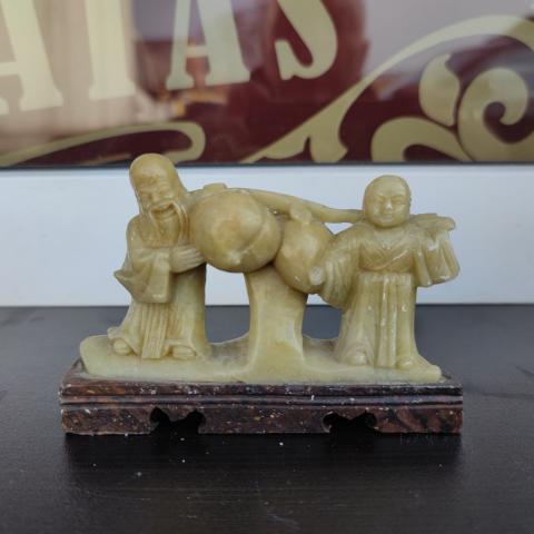 Akmeninė onikso statulėlė kiniečiai su arbūzais.
