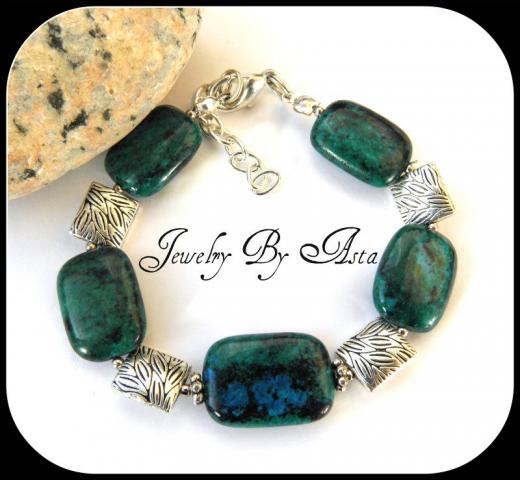 Akmuo - Chryzokolas. Ilgis 19 cm (+ 3 cm prailginimo grandinele)