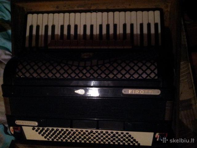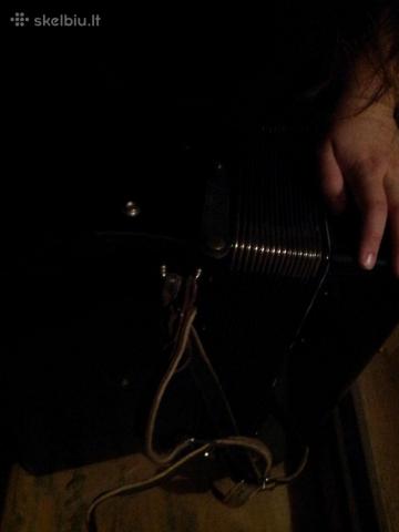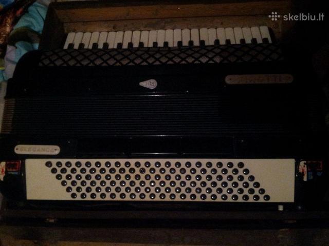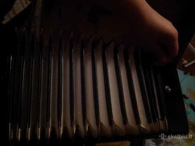 Koncertinis akordeonas. Dumples, reikėtų paklijuoti, per sujungimą, nes ilgai stovėjo nenaudotas. Buvo naudojamas vestuvėse, kadangi juo grojo vestuvių muzikantas. Dėklas gal nelabai gražus, ir diržai.