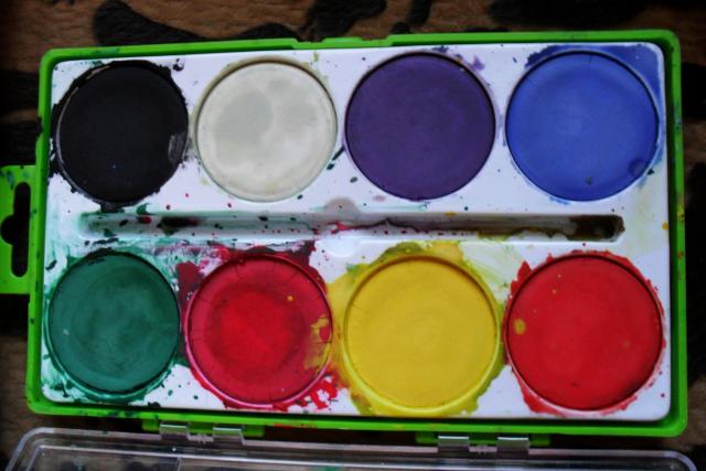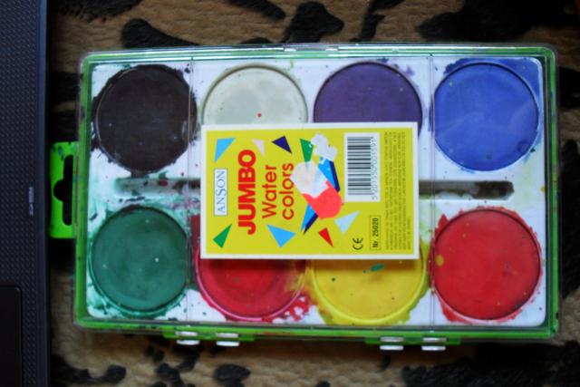 naudota akvarelė, bet tapo puikiai. :)) daug likę. vaikų džiaugsmas! pridėsiu teptuką. :))