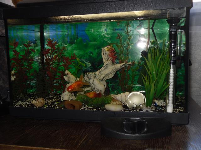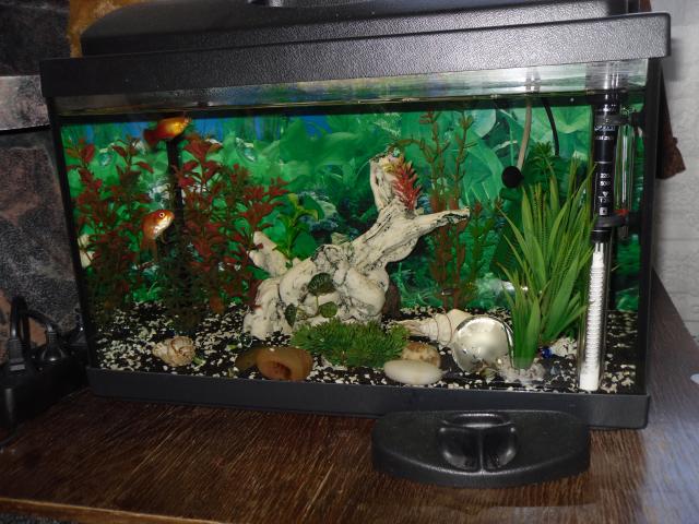 Akvariumas su sildytuvu, burbuliatorium, termometru, apsvietimu, pilnai irengtas...