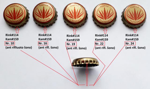 Konkretus kamštelis identifikuojamas pagal rinkinio ir kamštelio numerius. Kamšteliai naudoti, nuimti nuo butelių. Žiūr. foto