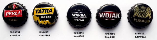 Konkretus kamštelis identifikuojamas pagal rinkinio ir kamštelio numerius. Kamšteliai naudoti, nuimti nuo butelių. Galima rinktis bet kurį kamštelį arba visą rinkinuką. Žiūr. foto