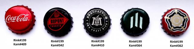 Konkretus kamštelis identifikuojamas pagal rinkinio ir kamštelio numerius. Kamšteliai naudoti, nuimti nuo butelių. Galima rinktis bet kurį kamštelį arba visą rinkinuką. Žiūr. foto
